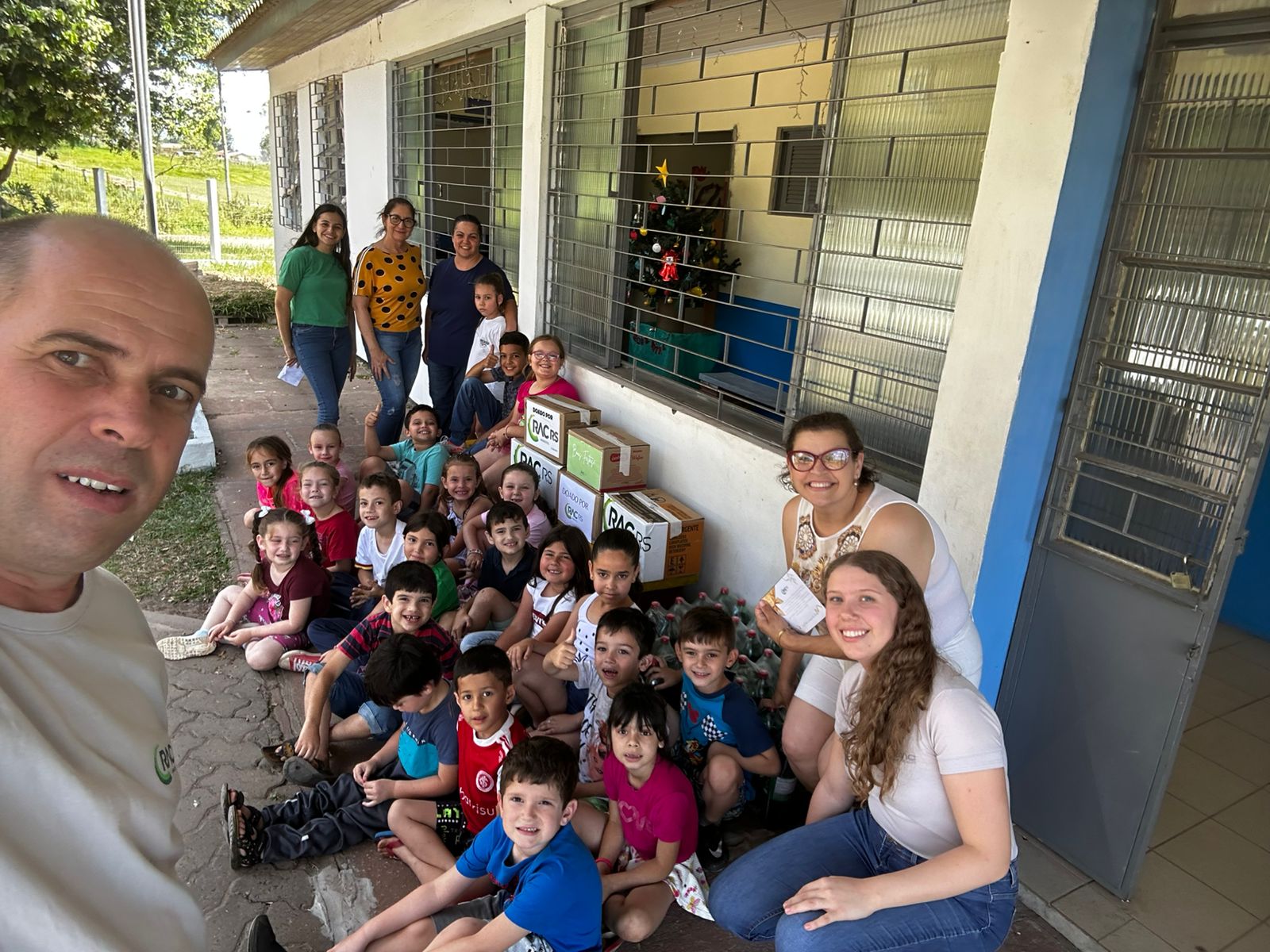 Na semana anterior, a RAC RS Ambiental esteve na Escola Santos Dumont para realizar a entrega da doação destinada à festa de Natal e à formatura da educação infantil.